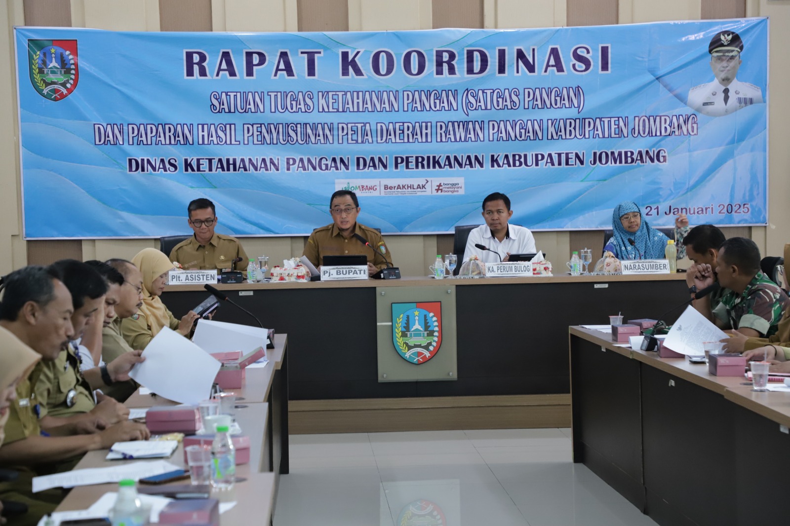 "Filosofi Satgas Ketahanan Pangan bukan hanya sebagai forum rapat, tetapi sebagai wadah untuk bekerja, berkolaborasi, dan mencapai target bersama. Oleh karena itu, pembagian tugas yang detail, alokasi anggaran yang jelas, serta database terpadu untuk memantau ketersediaan dan harga bahan pokok secara real-time menjadi krusial. Selain itu, implementasi program makan bergizi gratis juga harus didukung oleh ketersediaan bahan pangan yang memadai, dengan memanfaatkan sumber daya lokal. Dengan demikian, diharapkan setiap anggota Satgas memahami perannya masing-masing dan berkontribusi secara efektif dalam mewujudkan ketahanan pangan di Kabupaten Jombang", tandas Pj Bupati Jombang Teguh Narutomo.