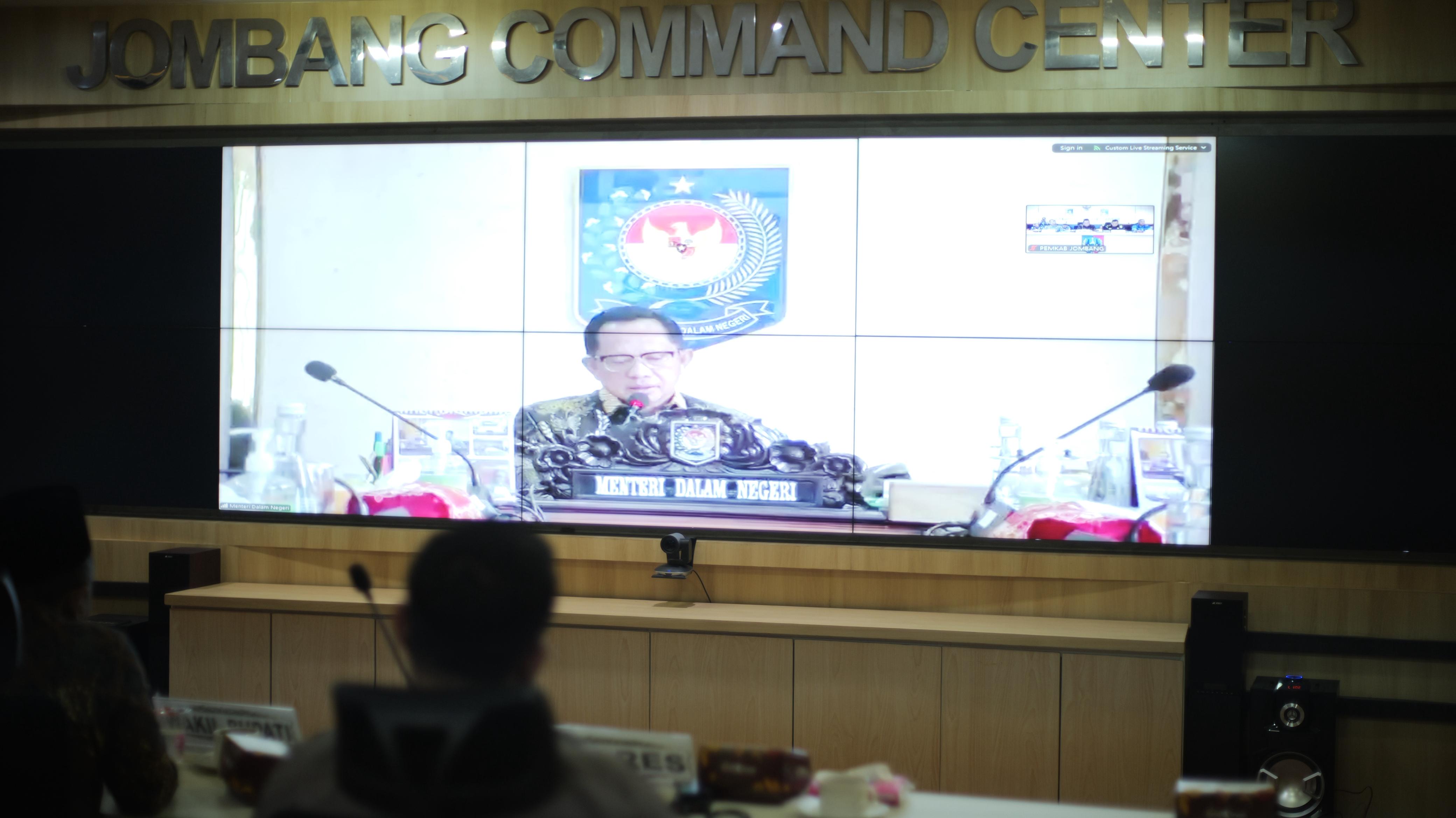 Wakil Bupati Jombang, Salmanudin, bersama perwakilan Forkopimda dan para Kepala OPD terkait lingkup Pemkab Jombang, mengikuti Rakornas dari ruang Jombang Command Center (JCC). Rakornas tersebut secara umum membahas langkah strategis pemerintah daerah dalam menghadapi potensi bencana, pengendalian inflasi, serta persiapan jelang Nataru.