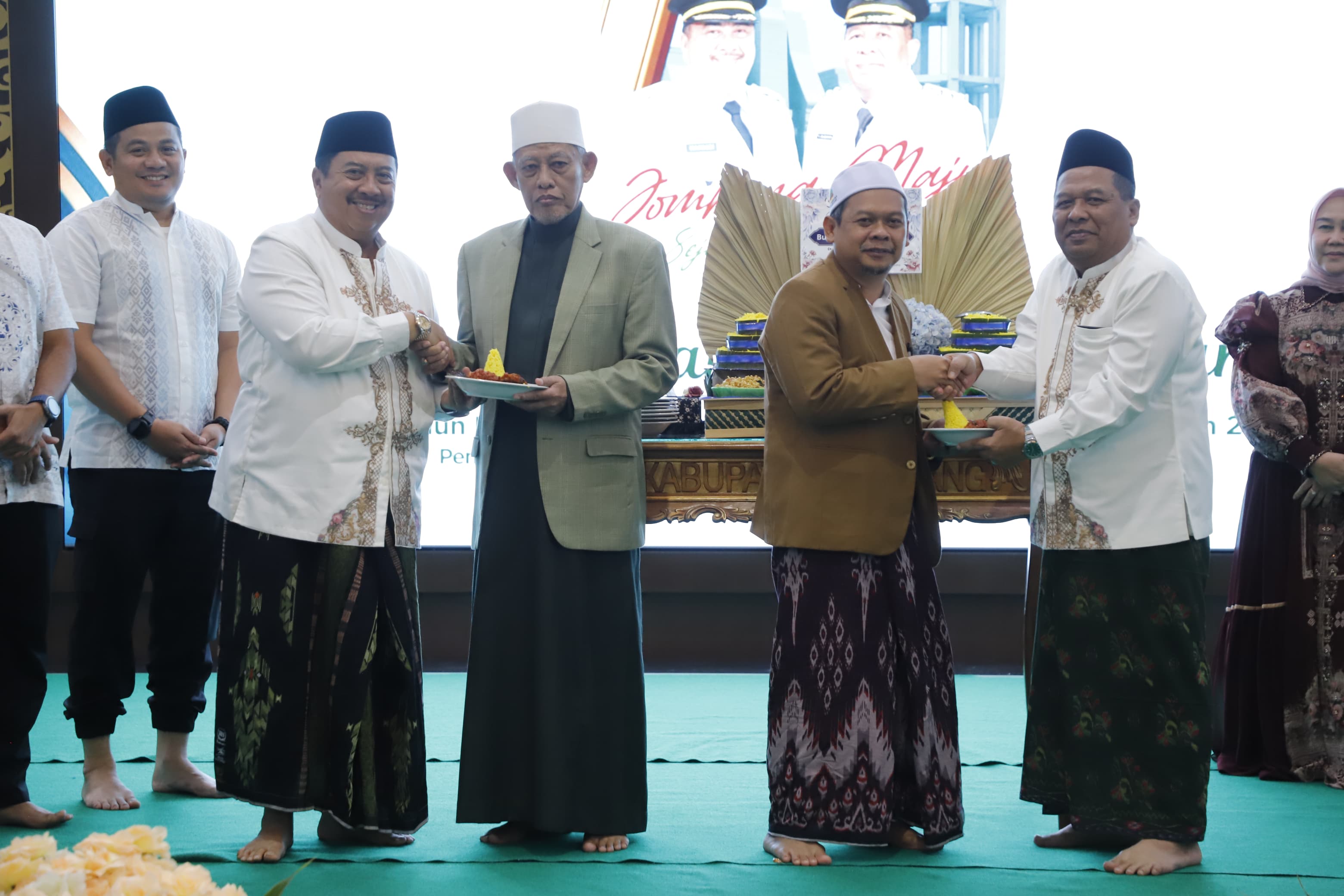 Acara yang berlangsung khidmat di tengah suasana bulan suci Ramadan 1447H/2026M ini dihadiri jajaran Forkopimda, tokoh agama diantaranya KH. Cholil Dahlan Pengasuh Ponpes Darul Ulum Rejoso Peterongan yang juga Dewan Pertimbangan MUI Jombang yang memimpin Istighosah dan KH. Nur Hadi (Mbah Bolong) Pengasuh Pondok Pesantren Falahul Muhibbin di Watugaluh, Diwek, yang hadir menyampaikan tausiyah dan doa. Tampak hadir Sekdakab Jombang Agus Purnomo S.H., M.Si juga para Kepala Organisasi Perangkat Daerah (OPD) lingkup Pemkab Jombang, Ketua Tim Penggerak PKK Kabuaten Jombang, Yuliati Nugrahani Warsubi, Ketua 1 TP PKK Kabupaten Jombang Ning Ema Erfina, Ketua DWP Kabupaten Jombang Lilik Agus Purnomo.
