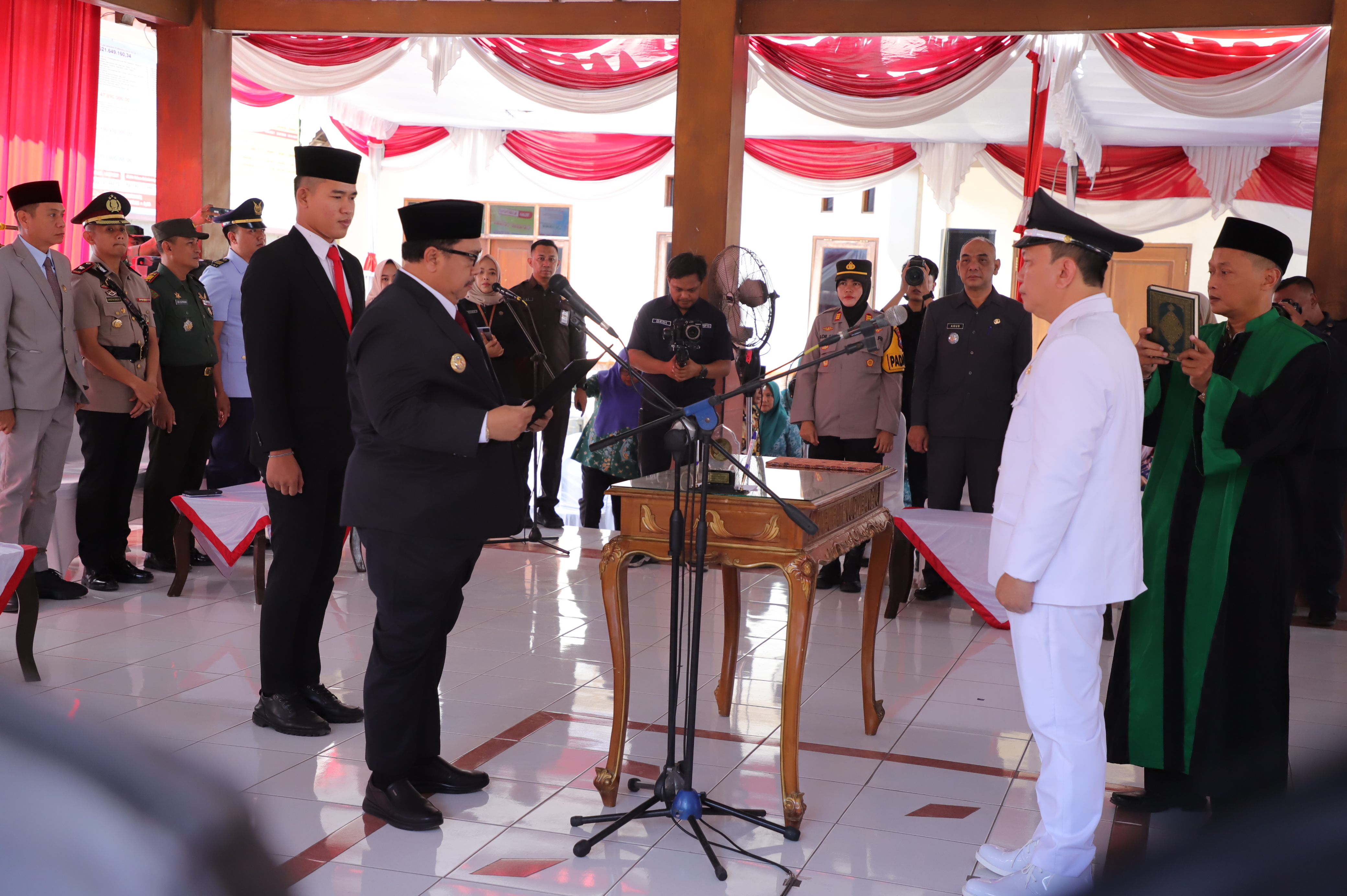 Prosesi pelantikan berjalan tertib dan khidmat. Slamet Santoso akan melaksanakan amanah sebagai Kepala Desa Antar Waktu Desa Mojokrapak, sejak dilantik sampai 5 Desember 2027.