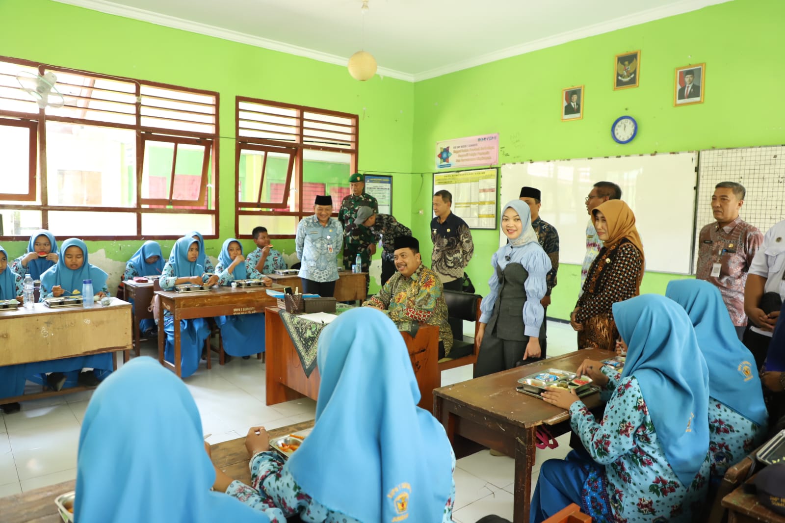 Selain fokus pada program gizi, Bupati Warsubi turut meninjau kondisi sarana dan prasarana pendidikan. Ia masuk ke beberapa ruang kelas yang baru direhabilitasi untuk melihat langsung situasi belajar siswa.