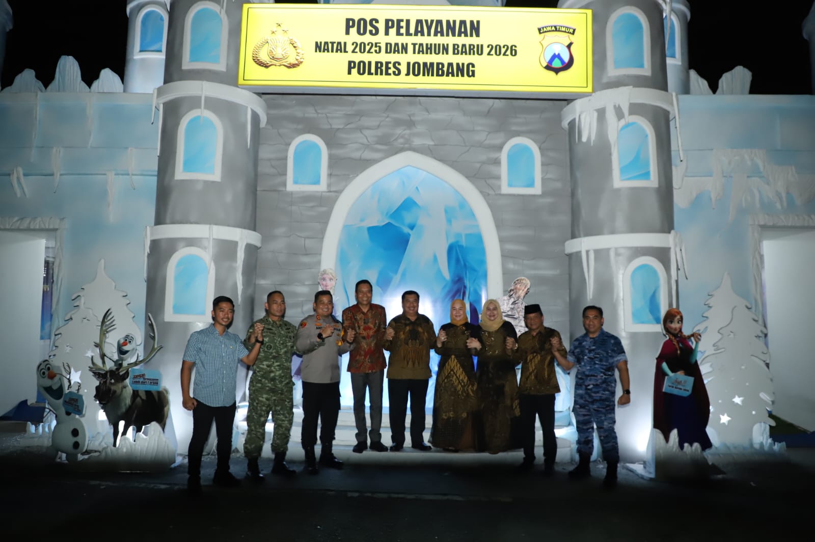 Kunjungan terakhir adalah di pos pantau Natal dan Tahun Baru yang ada di perempatan stasiun Kereta Api Jombang. Setiba di Pos Nataru yang viral ini, Bupati Warsubi tampak berbaur dengan warga yang tengah berswafoto di pos pantau bertemakan film Frozen.