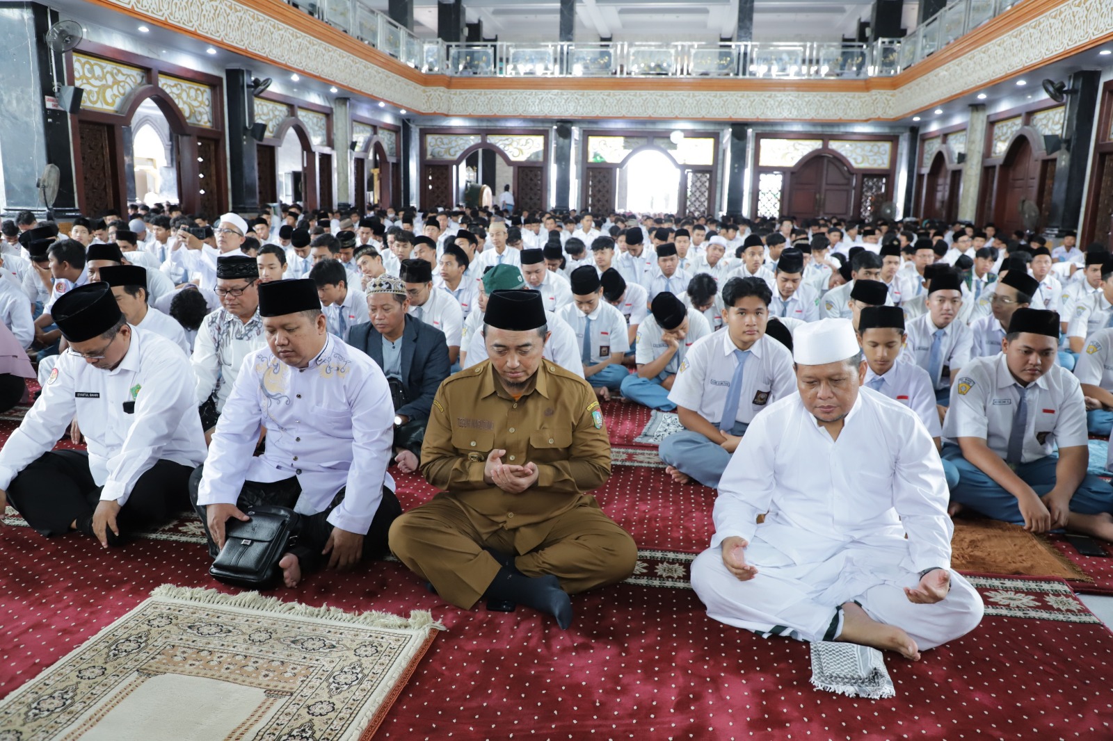 JOMBANGKAB - Masjid Agung Baitul Mukminin Alun Alun Jombang pada Selasa (21/1/2025) pagi, dipenuhi ribuan siswa yang khidmat mengikuti acara yang diberi label Doa Bersama 2025 Meraih Sukses Akhir Studi yang mengusung tema "Doa dan Inspirasi Isra' Mi'raj, Bekal Menuju Kesuksesan Studi. Kegiatan yang diinisiasi MGMP PAI SMAN Kabupaten Jombang untuk mendoakan kesuksesan siswa kelas XII SMA se-Kabupaten Jombang yang akan segera menghadapi akhir studi dihadiri Pj Bupati Jombang Dr Drs Teguh Narutomo M.M.