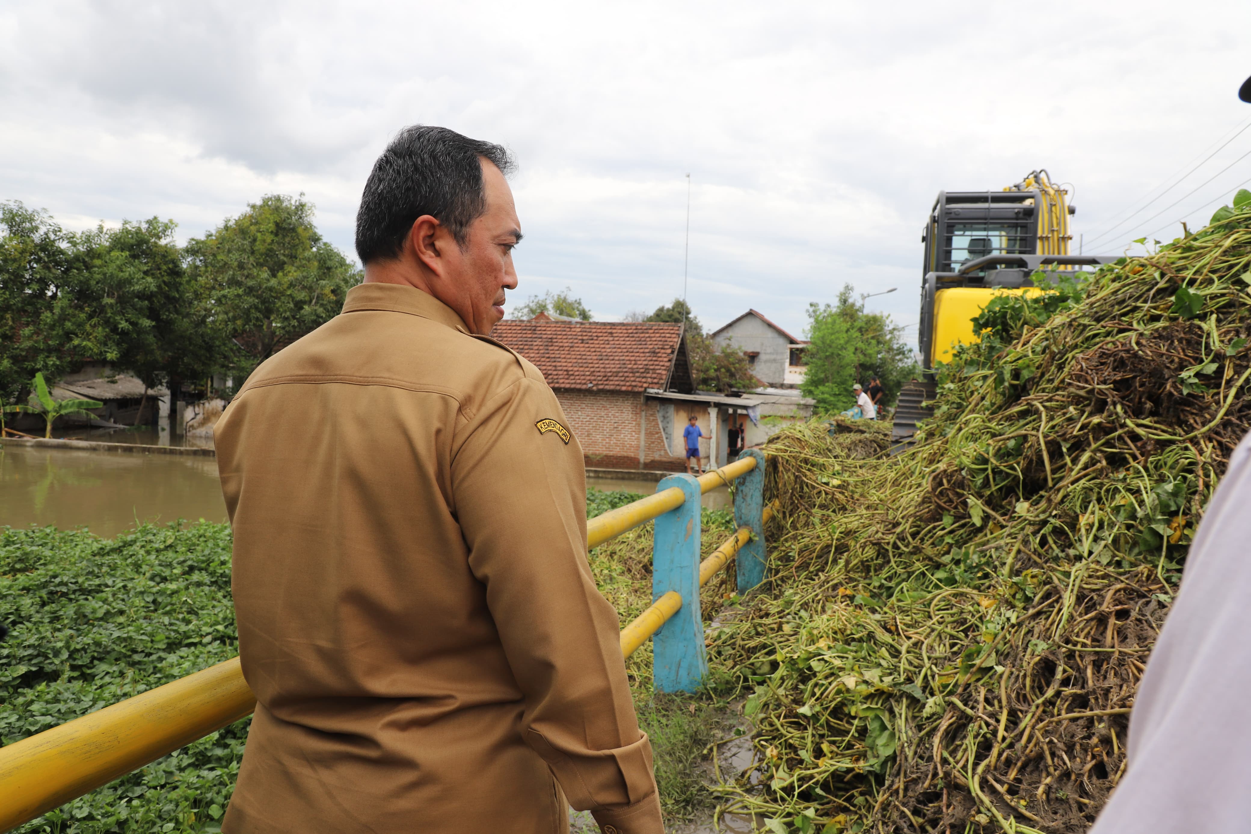 "Petugas dari BPBD, relawan dan masyarakat melakukan pengambilan semua sampah-sampah, eceng gondok. Targetnya selesai hari ini sehingga aliran air bisa cepat keluar dan diharapkan tidak ada hujan lagi", tutur Pj Bupati Jombang.
