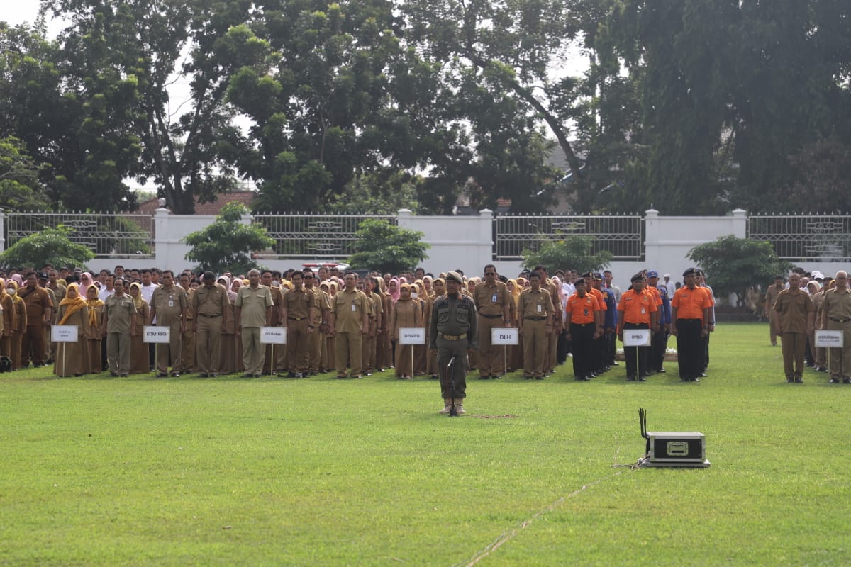 JOMBANGKAB - Seluruh Pegawai dilingkup Pemerintah Kabupaten (Pemkab) Jombang, pada Selasa (02/01/2024) pagi, mengikuti Apel Kerja yang dipimpin oleh Pj Bupati Jombang Sugiat di lapangan Pemkab Jombang.