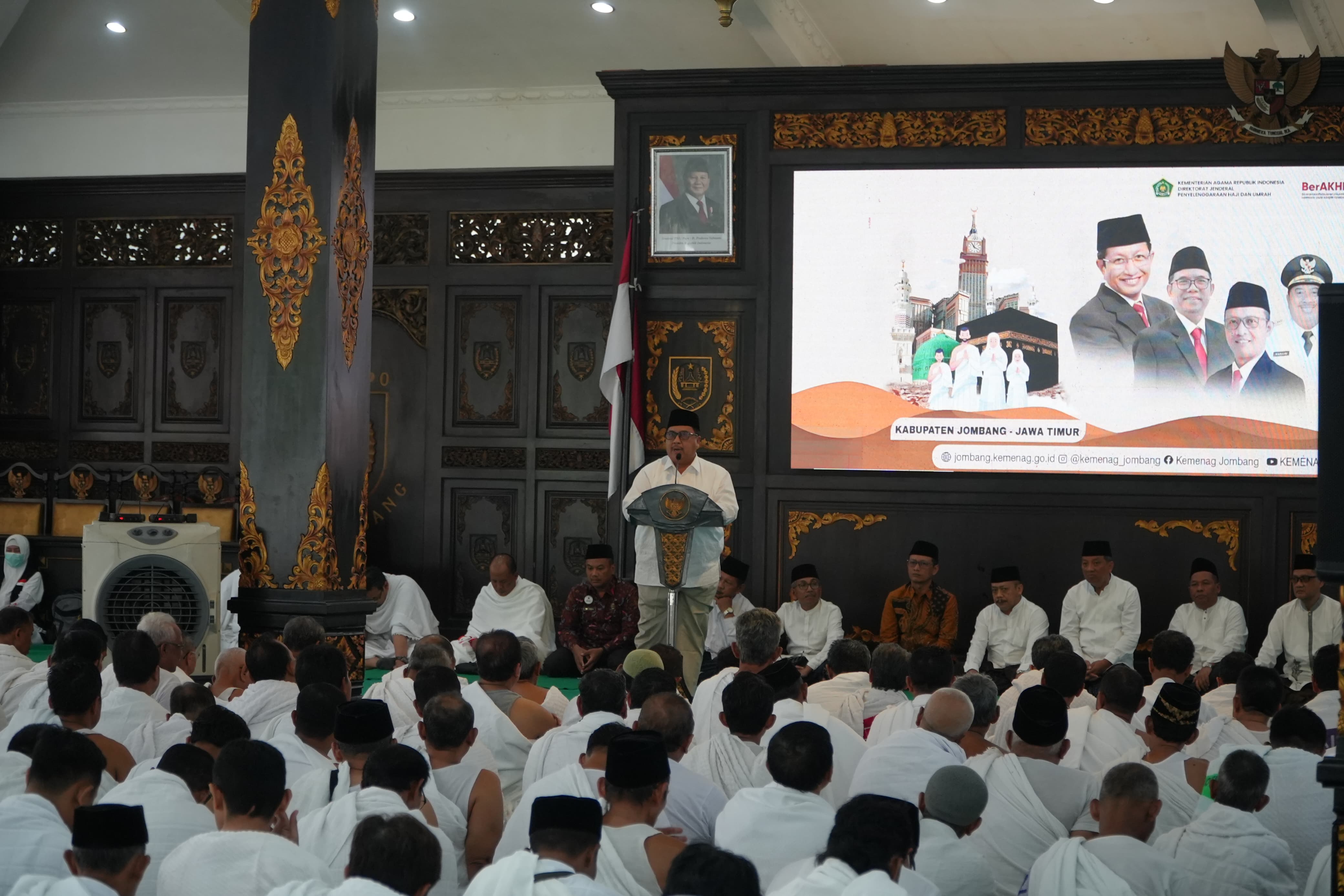 "Mudah-mudahan jemaah haji kita yang berangkat tahun 2025 dan belum melunasi dengan berbagai alasan tentunya bisa melunasi semuanya di waktu perpanjangan yang sampai tanggal 25 April 2025", doa Muhajir Kepala Kemenag Kabupaten Jombang disambut dengan ucapan Aamiin oleh jemaah haji dan undangan yang hadir.
