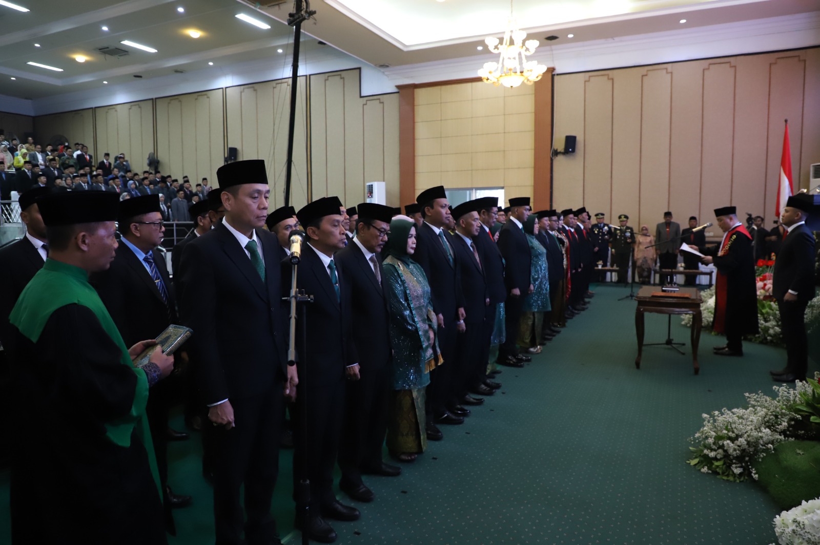 Pengucapan sumpah dan janji jabatan anggota Dewan terpilih Kabupaten Jombang dipimpin oleh Ketua Pengadilan Negeri Jombang, Faisal Akbarudin Taqwa, usai pengambilan sumpah janji.