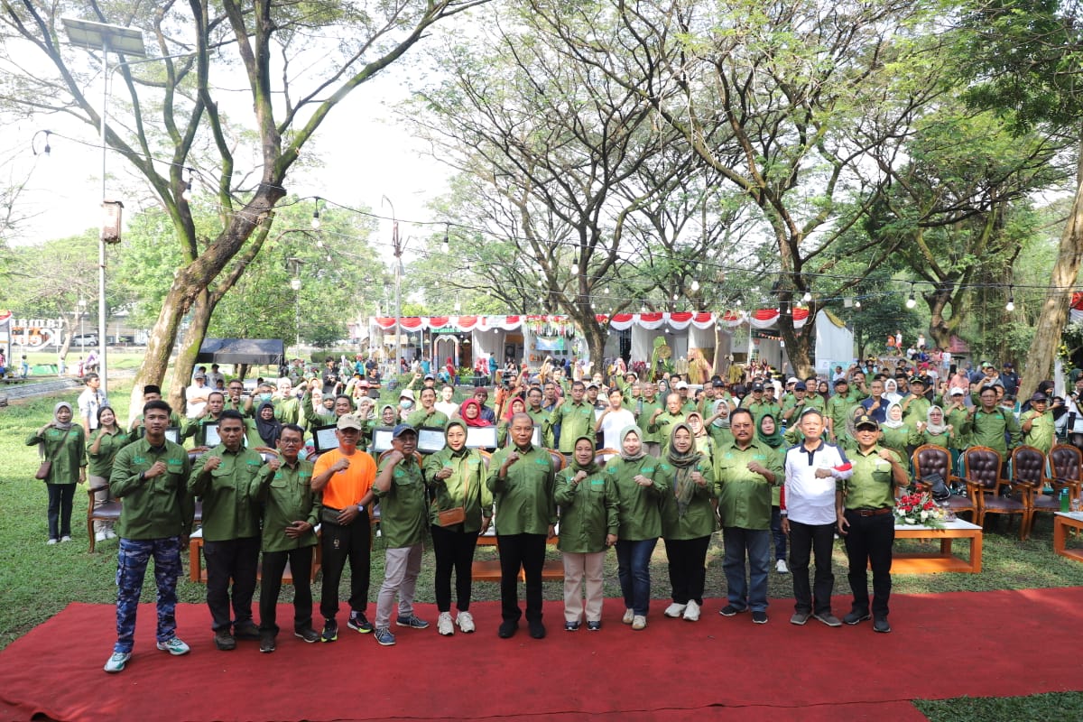 JOMBANGKAB - Ruang Terbuka Hijau (RTH) Kebon Ratu Jombang yang ada di Desa Keplaksari, Peterongan, Jombang pada Jumat (28/6/2024) pagi, terlihat semarak dengan digelarnya event Jombang Eco Creative (JEC) 2024 yang dibuka oleh Pj Bupati Jombang Sugiat S.Sos., M.Psi., T.