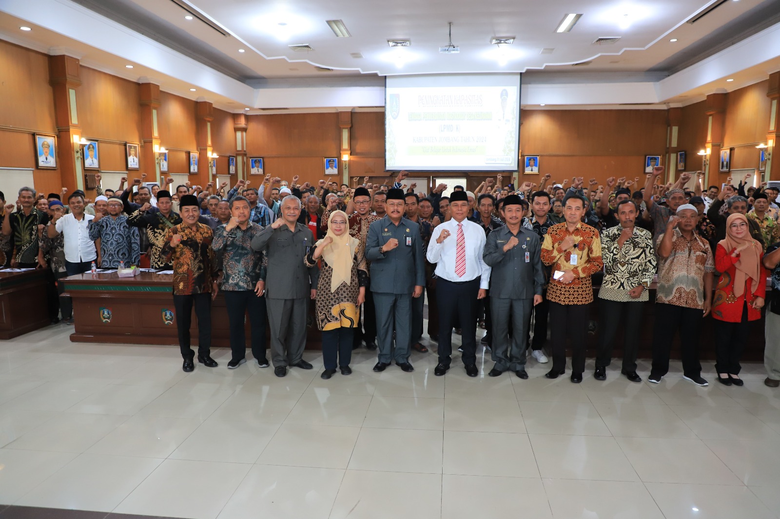 Kegiatan Peningkatan Kapasitas Lembaga Pemberdayaan Masyarakat Desa juga Kelurahan yang dibuka oleh Pj Bupati Jombang Sugiat ini mengusung tema "Giat Belajar Untuk Indonesia Emas". Tampak hadir Asisten Pemerintahan dan Kesejahteraan Rakyat, Tenaga Ahli Bupati, Kepala OPD terkait lingkup Pemkab Jombang.