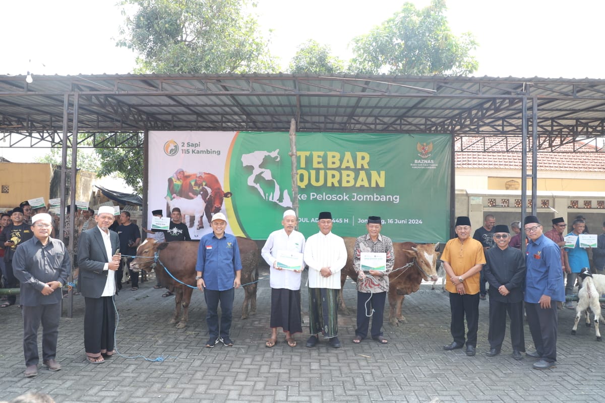 "Saya atas nama pribadi maupun atas nama Pemerintah Kabupaten Jombang mengucapkan banyak terima kasih khususnya kepada Baznas Kabupaten Jombang yang telah menyelenggarakan program tebar kurban yang diselenggarakan setiap tahun pada Hari Raya Idul Adha. Program ini merupakan salah satu bentuk nyata dari kepedulian kita", tutur Pj Bupati Jombang Sugiat