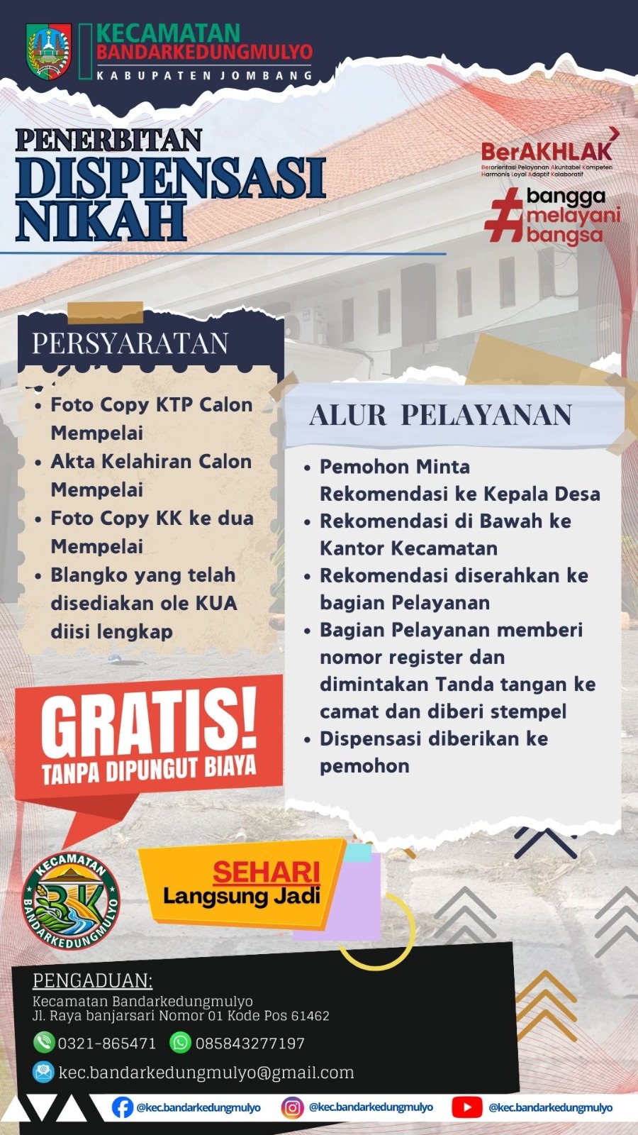 Penerbitan dispensasi nikah di kantor kecamatan adalah proses administrasi yang memungkinkan pasangan untuk menikah meskipun belum memenuhi persyaratan usia minimal yang ditetapkan oleh undang-undang. Dispensasi ini biasanya diajukan oleh orang tua atau wali dari calon pengantin yang berusia di bawah 19 tahun. Permohonan dilakukan di kantor kecamatan dengan melampirkan surat permohonan dispensasi, akta kelahiran, KTP, dan dokumen lain yang relevan. Setelah itu, pihak kecamatan akan memproses dan, jika disetujui, mengeluarkan surat dispensasi yang memungkinkan pernikahan dilangsungkan.