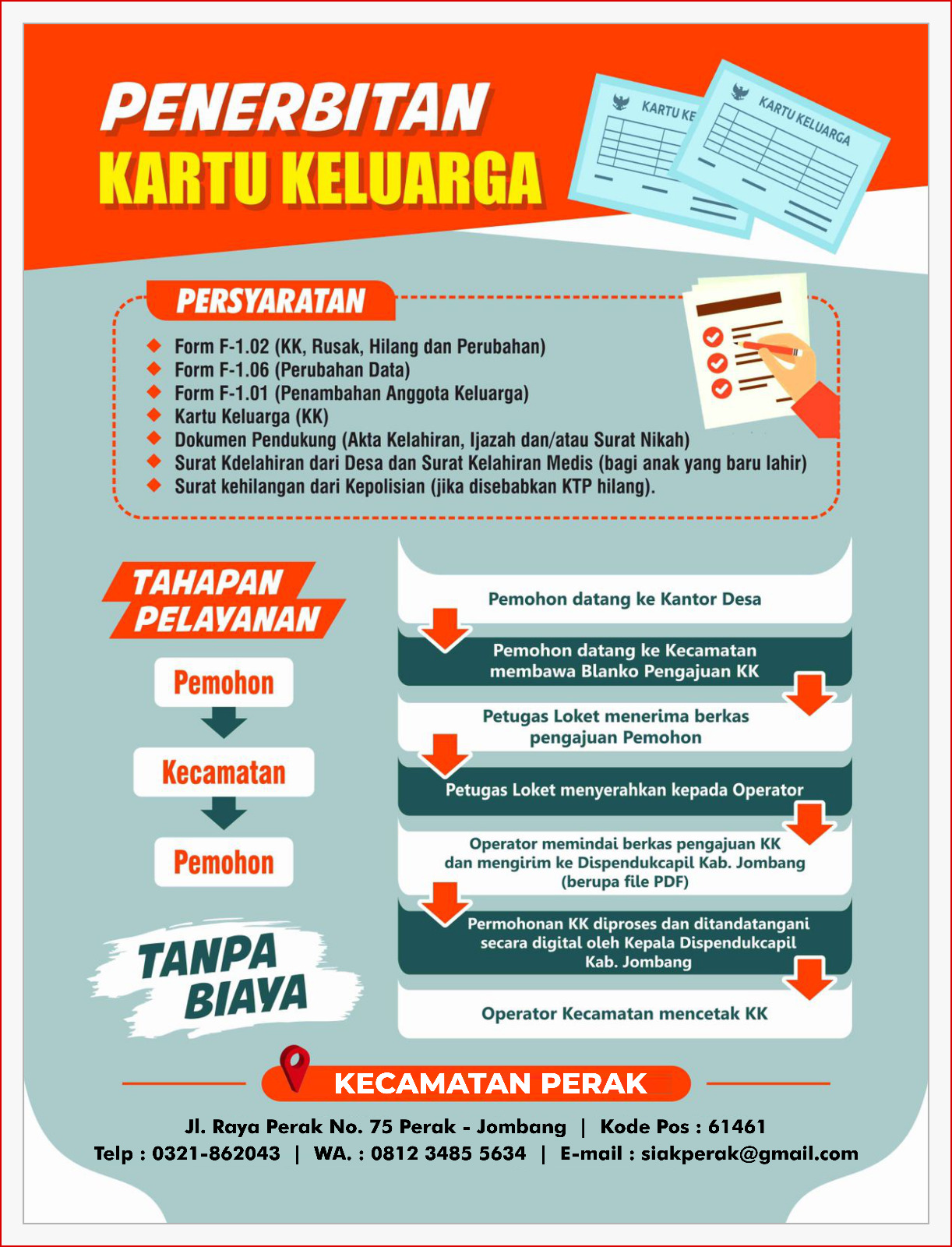 Persyaratan : Formulir bukti pengambilan Kartu Keluarga Gratis. Kecamatan Jogoroto Jl. Raya Nomor 01 Jogoroto Kode Pos 61485 Telp. : 0321 864403 WA. : 081236000118 e-mail : jogorotokec@gmail.com