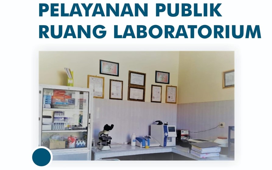 Jam Buka Pelayanan Laboratorium : Senin s/d Kamis : 07.30 WIB s/d 13.30 WIB Jum'at : 07.30 WIB s/d 13.30 WIB Sabtu : LIBUR Melayani : 1. Pemeriksaan Hematologi : a. DL Analyzer b. HB Stik 2. Kimia Darah a. Gula Darah b. Kolestrol c. Asam Urat 3. Serologi a. Widal 4. Imunologi a. Golongan Darah 5. Imunoserologi a. HBS Ag b. HIV Rapid Test c. Sifilis Rapid Test d. HCG Test (Test Kehamilan) 6. Mikro Biologi a. TCM (Test Cepat Molekuler) b. BTA (Bakteri Tahan Asam)