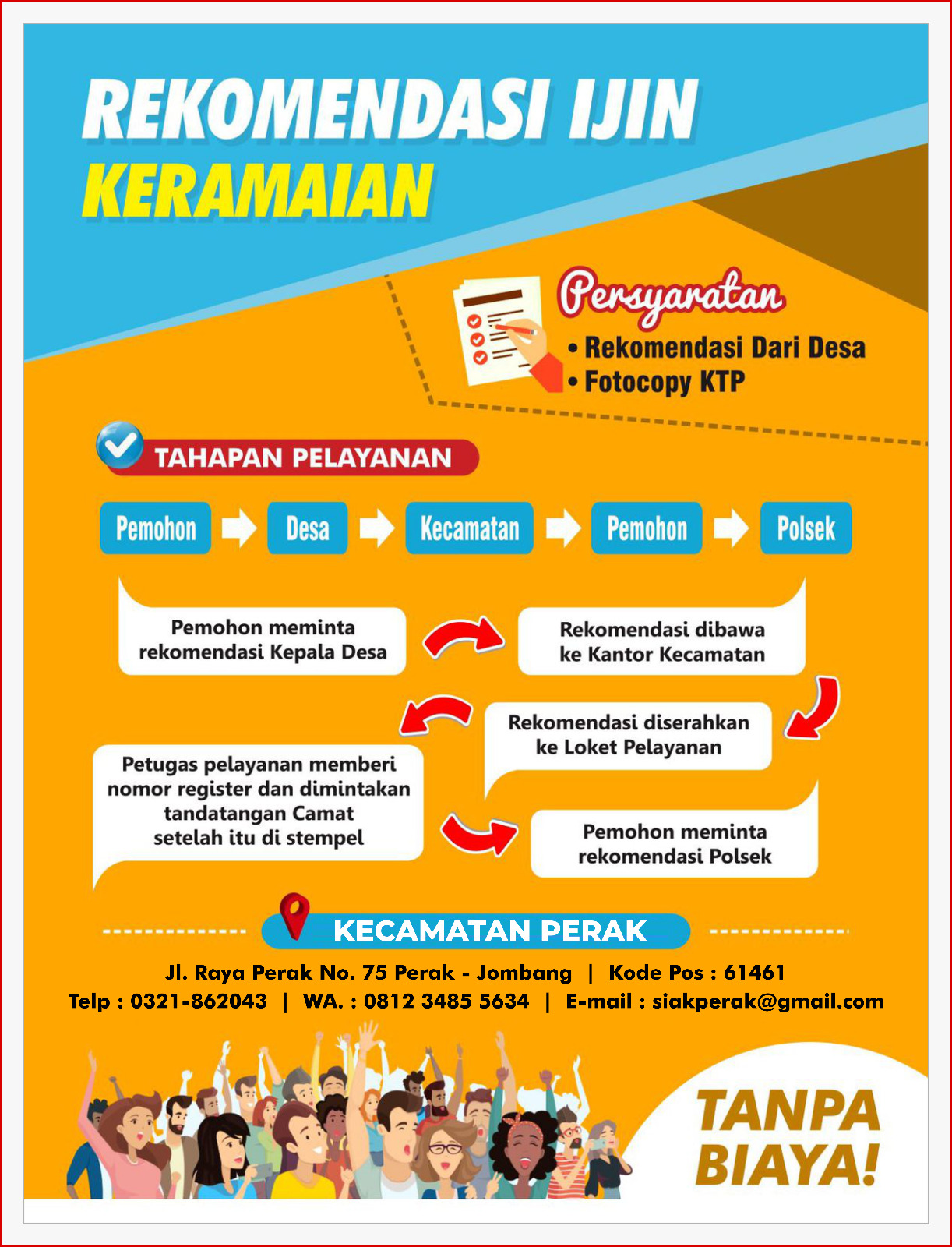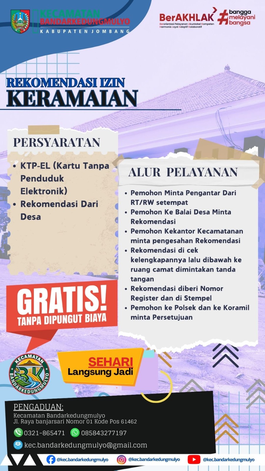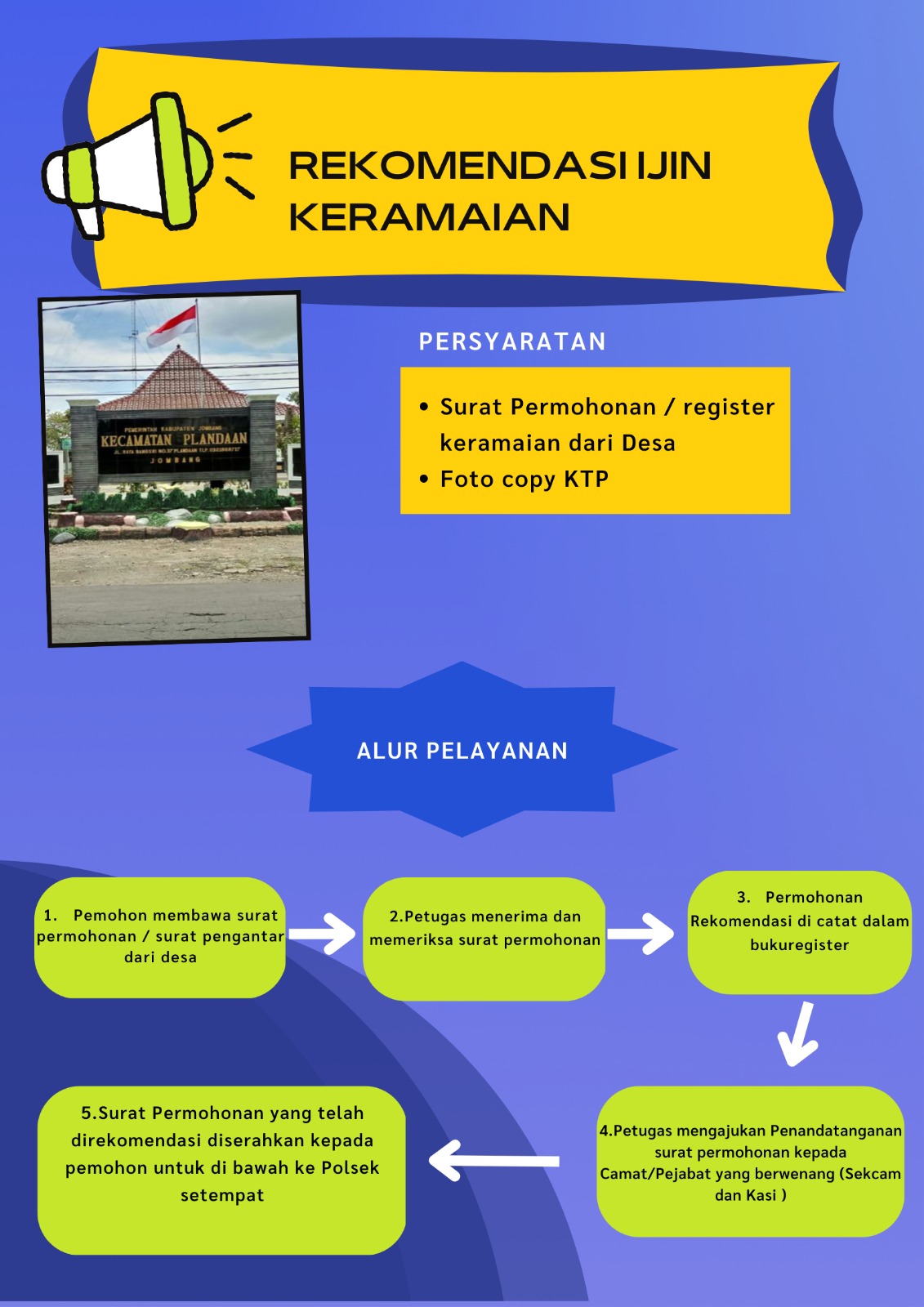 Rekomendasi Ijin Keramaian adalah surat rekomendasi yang dikeluarkan oleh pihak berwenang, seperti kepolisian atau pemerintah setempat, untuk mengadakan acara atau kegiatan yang melibatkan banyak orang, seperti konser, pesta, atau kegiatan budaya. Surat ini diperlukan untuk memastikan bahwa acara tersebut memenuhi syarat keamanan, ketertiban, dan tidak mengganggu lingkungan sekitar. Proses pengajuan biasanya melibatkan pengisian formulir, penyampaian rencana acara, serta koordinasi dengan pihak keamanan dan masyarakat setempat. Setelah semua persyaratan terpenuhi, izin keramaian dapat diberikan.