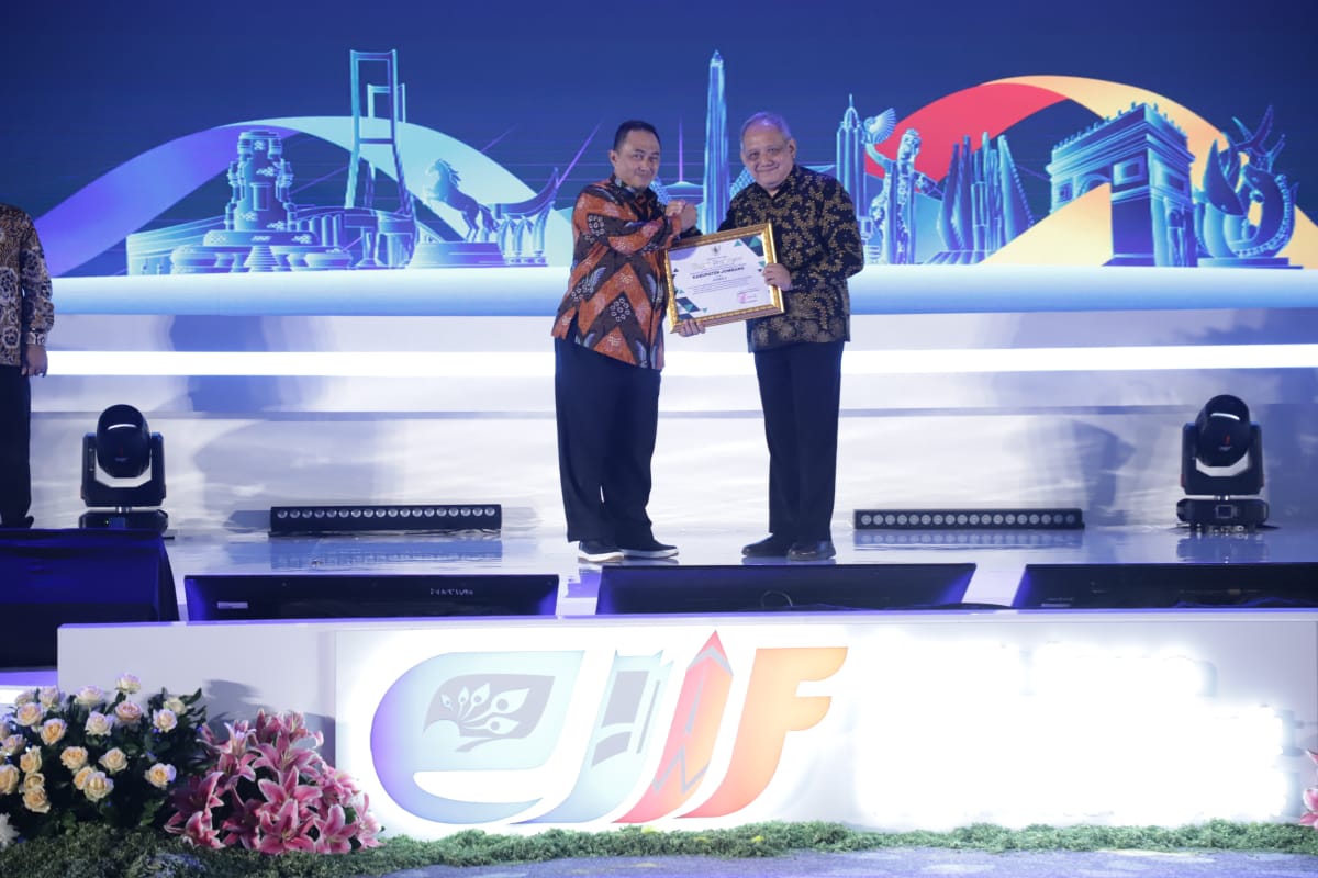 Penghargaan tersebut diserahkan langsung Direktur Pengembangan Potensi Daerah Kementrian Investasi/BPKM Suhartono dalam kegiatan East Java Investment Forum (EJIF) Tahun 2024 di Ballroom Hotel Westin Surabaya, Kamis (24/10).
