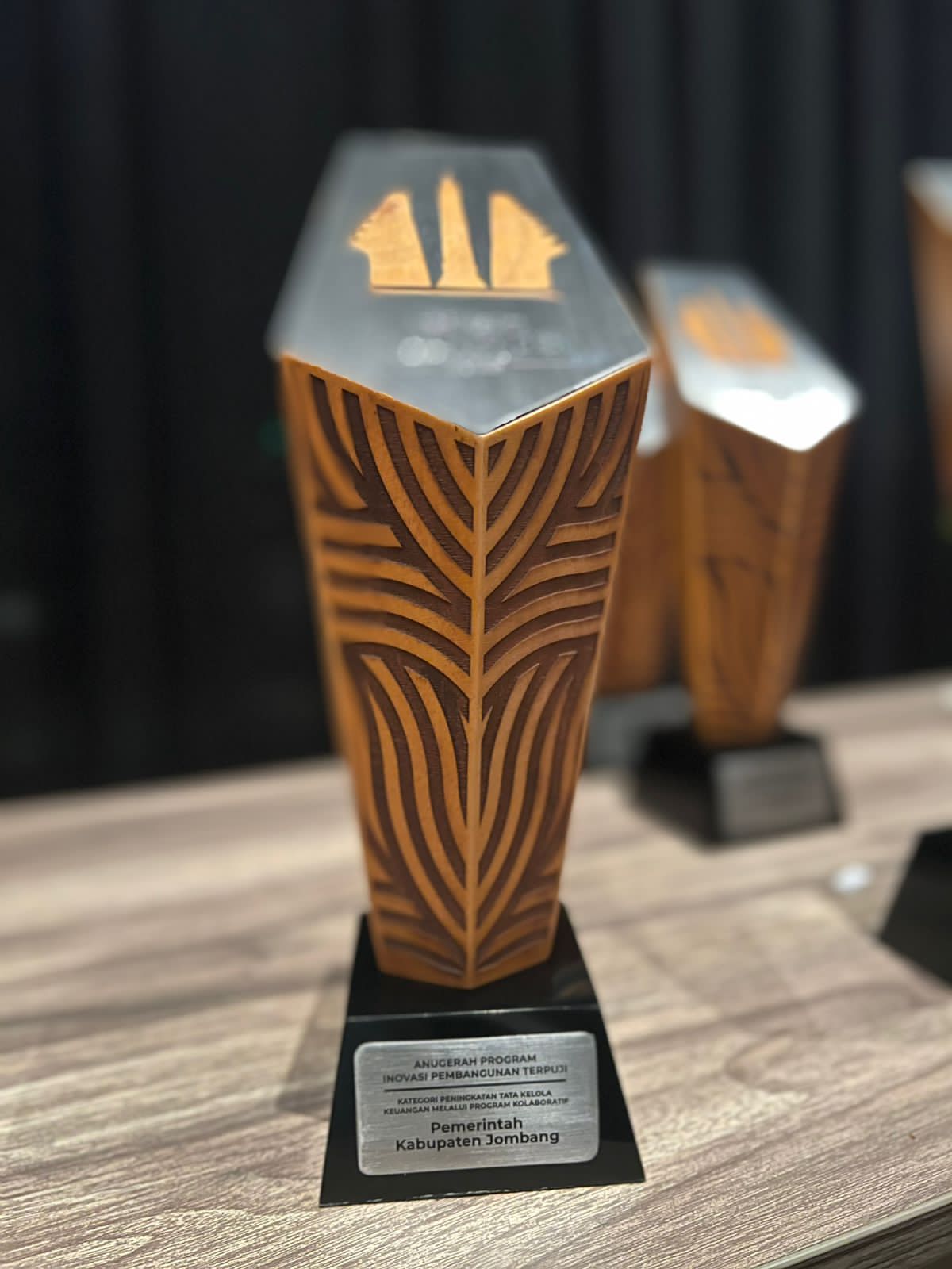 Anugerah Inovasi Pembangunan Terpuji di ajang detikJatim Awards 2025, kategori Peningkatan Tata Kelola Keuangan melalui Program Kolaboratif kepada Pemerintah Kabupaten Jombang.