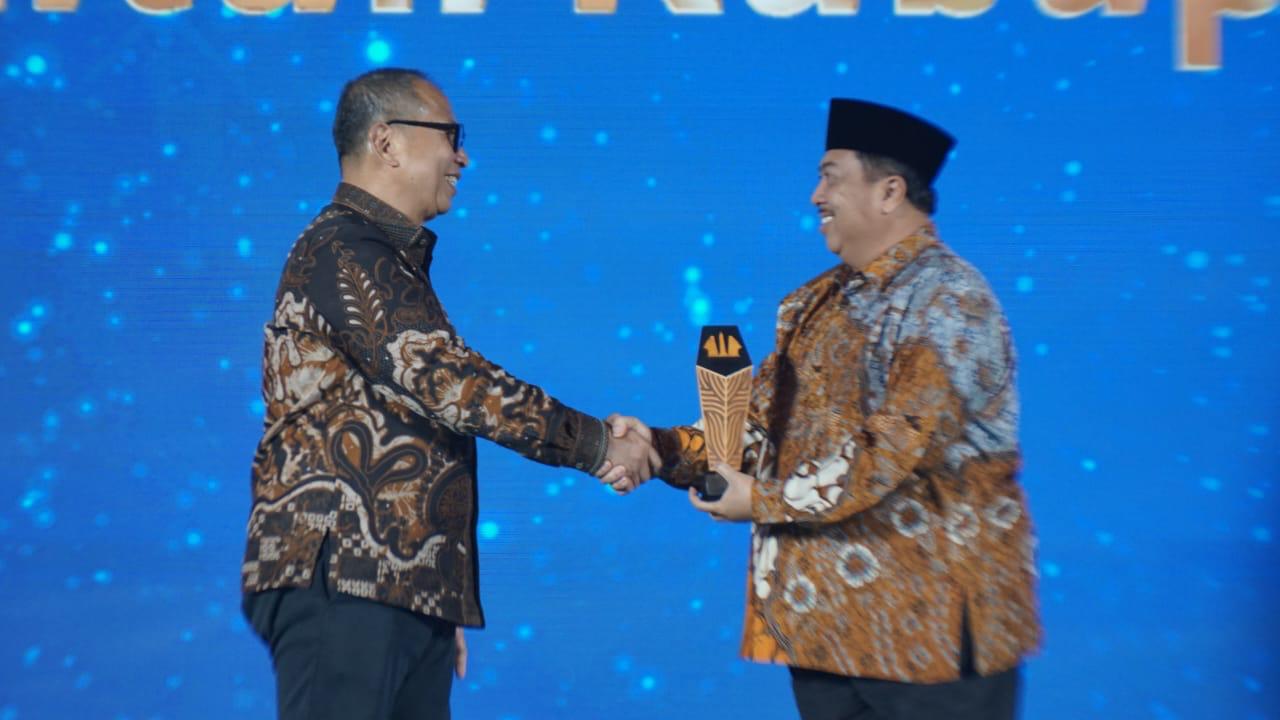 Bupati Jombang H. Warsubi S.H., M.Si menerima Trophy dari Direktur Utama detikcom Abdul Aziz pada Rabu (5/11) malam, di Grand Mercure Malang Mirama.